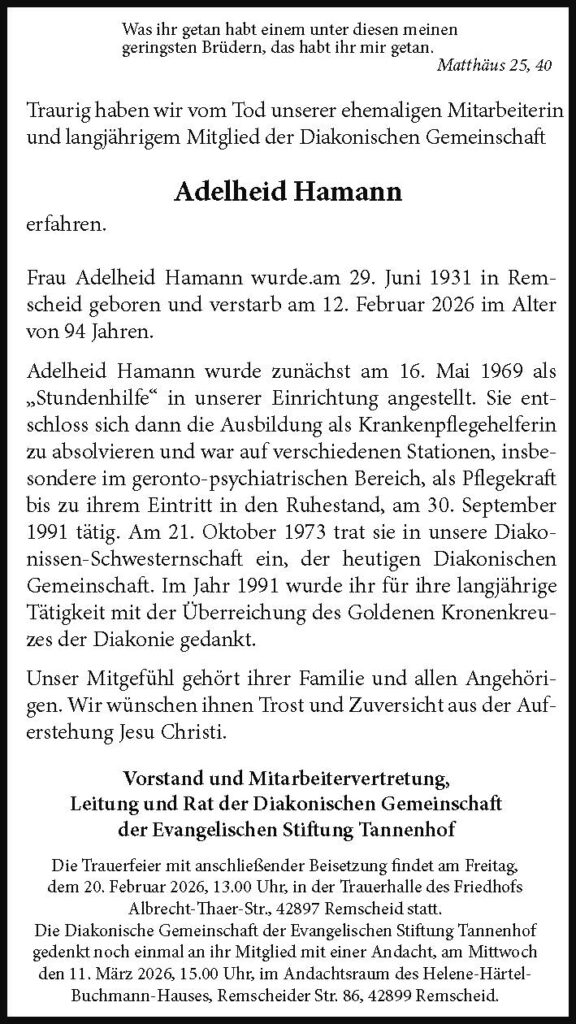 Nachruf: Adelheid Hamann
