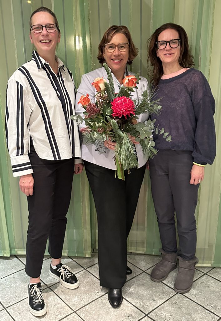 Frau Melanie Müller-Spahn, Geschäftsführerin des SkF e.V., freut sich im Rahmen der Weihnachtsfeier des Clubs über die Spende von Lupita Reimann (r.) und Christina Große-Hering (l.).